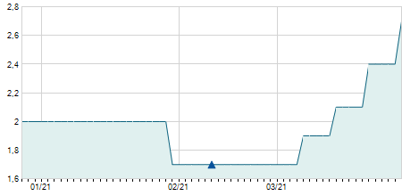| 09/07/2019 | +0,30 / +0,34% | 88,00 | 88,90 | 87,00 | 88,50 | 88,00 | 63,39 | 1.000 |   |