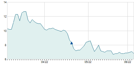| 13/02/2023 | -0,39 / -4,39% | 8,83 | 8,85 | 8,48 | 8,50 | 8,67 | 6,51 | 5.952.600 |   |