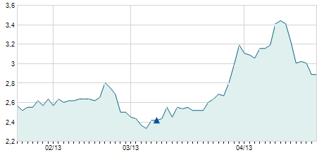 | 29/03/2022 | +1,70 / +14,29% | 13,60 | 13,60 | 13,60 | 13,60 | 13,60 | 10,96 | 100 |   |