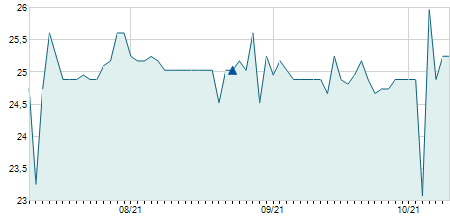 | 25/05/2023 | -0,50 / -4,55% | 10,50 | 10,50 | 10,50 | 10,50 | 10,50 | 9,02 | 600 |   |