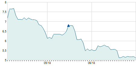 | 04/04/2025 | -0,30 / -10,00% | 2,90 | 2,90 | 2,60 | 2,70 | 2,70 | 2,70 | 319.300 |   |