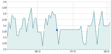 | 07/02/2025 | +0,10 / +3,13% | 3,20 | 3,40 | 3,20 | 3,30 | 3,30 | 3,30 | 109.800 |   |