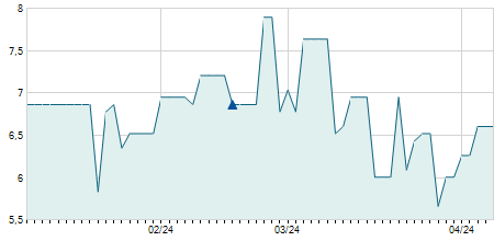 | 01/02/2021 | -0,10 / -0,66% | 16,20 | 16,20 | 14,40 | 15,00 | 15,60 | 12,80 | 981.000 |   |