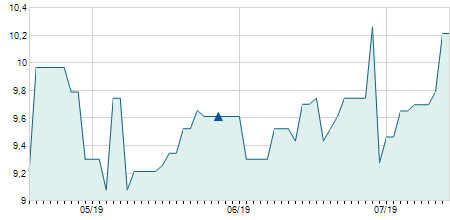 | 10/02/2023 | -0,10 / -2,17% | 4,60 | 4,60 | 4,40 | 4,50 | 4,50 | 4,50 | 141.200 |   |