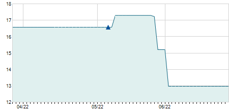 | 15/03/2024 | -0,10 / -2,33% | 4,30 | 4,30 | 4,10 | 4,20 | 4,20 | 4,20 | 172.400 |   |