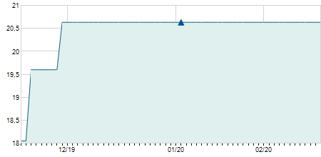 | 26/04/2022 | -1,00 / -4,67% | 21,00 | 21,00 | 19,80 | 20,40 | 20,10 | 20,40 | 1.650.000 |   |