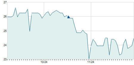 | 26/05/2023 | +0,45 / +1,57% | 28,70 | 29,40 | 28,70 | 29,10 | 29,11 | 22,00 | 2.170.400 |   |