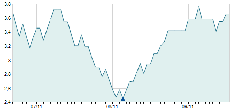-0,40 / -3,64%