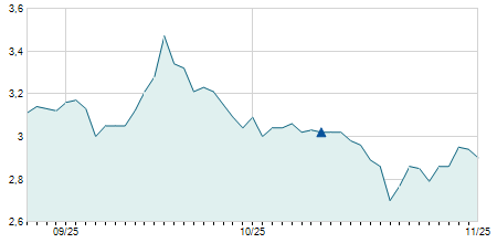 | 03/01/2024 | +0,30 / +3,41% | 8,80 | 9,10 | 8,80 | 9,10 | 8,96 | 7,69 | 23.500 |   |