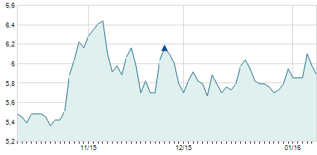 | 18/03/2022 | +0,50 / +4,39% | 11,60 | 12,10 | 11,60 | 11,90 | 11,80 | 7,97 | 78.800 |   |