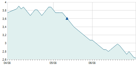 | 28/10/2008 | +0,40 / +3,64% | 10,50 | 11,40 | 10,30 | 11,40 | 10,77 | 1,45 | 31.500 |   |