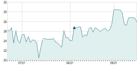 | 14/10/2021 | +0,30 / +2,75% | 10,90 | 11,20 | 10,90 | 11,20 | 10,99 | 11,20 | 56.300 |   |