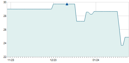 | 28/04/2023 | -0,10 / -3,33% | 2,90 | 2,90 | 2,90 | 2,90 | 2,90 | 2,90 | 300 |   |