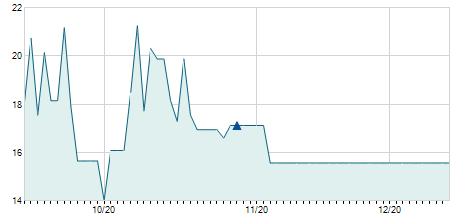 | 16/03/2020 | -0,70 / -8,24% | 8,50 | 8,50 | 7,80 | 7,80 | 8,27 | 4,97 | 300 |   |