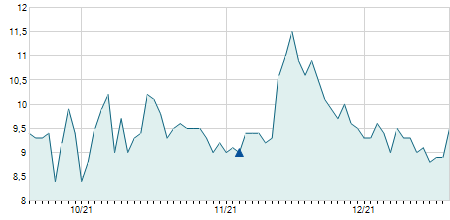 | 04/07/2025 | +0,50 / +8,33% | 6,00 | 6,50 | 6,00 | 6,50 | 6,17 | 6,50 | 300 |   |