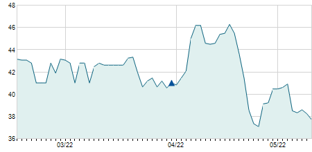 | 04/02/2016 | +0,10 / +0,22% | 44,40 | 45,00 | 44,40 | 44,60 | 44,61 | 13,43 | 19.660 |   |