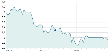-0,30 / -3,90%