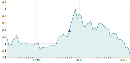 | 19/08/2020 | 0,00 / 0,00% | 9,60 | 9,60 | 9,60 | 9,60 | 9,60 | 9,51 | 0 |   |
