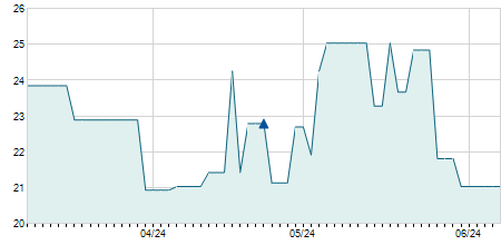| 30/03/2016 | -0,80 / -4,04% | 19,80 | 19,90 | 19,00 | 19,00 | 19,38 | 6,16 | 1.038.280 |   |