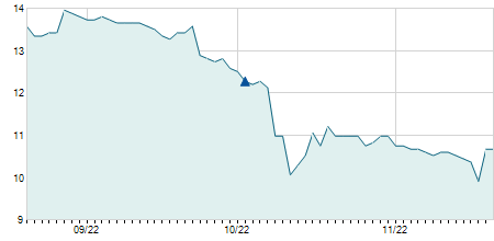 | 13/01/2017 | -0,40 / -2,35% | 17,00 | 17,05 | 16,60 | 16,60 | 16,69 | 6,51 | 43.860 |   |