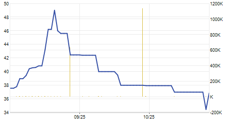 | 02/10/2017 | +0,01 / +0,37% | 2,76 | 2,76 | 2,69 | 2,70 | 2,72 | 2,70 | 227.910 |   |