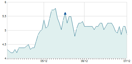 | 12/05/2023 | -0,70 / -3,89% | 16,40 | 17,90 | 16,40 | 17,30 | 17,43 | 14,59 | 8.800 |   |