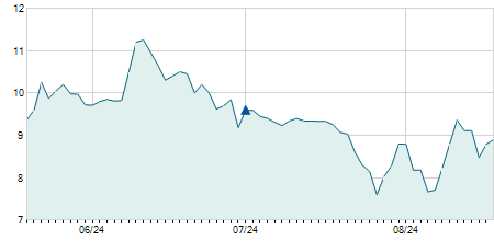| 08/03/2023 | 0,00 / 0,00% | 9,90 | 9,90 | 9,70 | 9,70 | 9,75 | 7,41 | 4.800 |   |