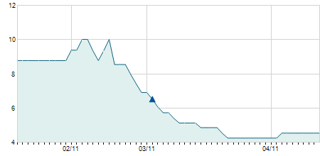| 02/04/2019 | -0,20 / -2,17% | 8,30 | 9,90 | 8,30 | 9,00 | 9,07 | 4,71 | 300 |   |