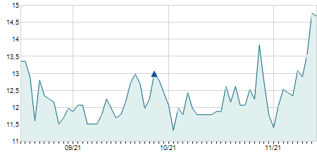 | 12/07/2023 | +0,10 / +0,85% | 11,90 | 11,90 | 11,50 | 11,80 | 11,53 | 9,02 | 4.900 |   |