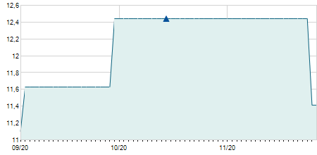 | 11/04/2023 | +0,10 / +1,00% | 10,20 | 10,20 | 10,10 | 10,10 | 10,14 | 7,72 | 8.600 |   |