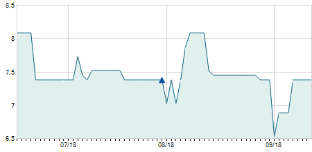 | 02/08/2019 | +0,60 / +9,23% | 7,10 | 7,10 | 7,10 | 7,10 | 7,10 | 3,71 | 100 |   |