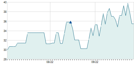 | 27/03/2019 | -0,30 / -2,86% | 9,50 | 10,20 | 9,50 | 10,20 | 9,85 | 5,33 | 200 |   |