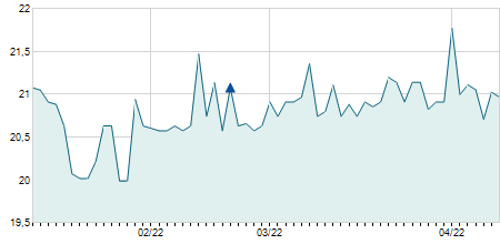 | 30/05/2022 | -0,10 / -0,57% | 17,20 | 17,50 | 17,20 | 17,50 | 17,33 | 11,49 | 1.600 |   |