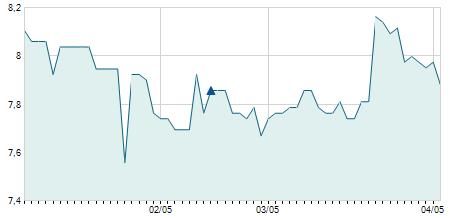 | 06/08/2024 | -0,40 / -5,19% | 7,90 | 7,90 | 7,30 | 7,30 | 7,80 | 7,30 | 600 |   |