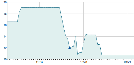 | 25/01/2022 | 0,00 / 0,00% | 59,00 | 59,00 | 59,00 | 59,00 | 59,00 | 39,33 | 5.200 |   |
