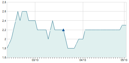| 13/10/2022 | -2,30 / -5,88% | 42,60 | 42,60 | 35,20 | 36,80 | 35,81 | 24,53 | 2.600 |   |