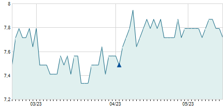| 28/03/2022 | +0,50 / +0,84% | 63,00 | 64,90 | 60,00 | 60,00 | 64,52 | 40,00 | 34.500 |   |