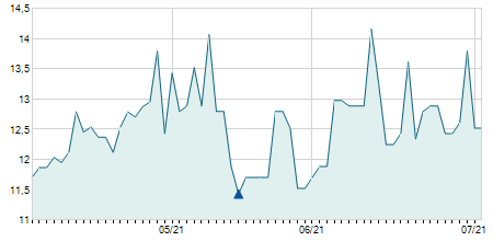 | 12/09/2024 | +0,20 / +1,29% | 14,40 | 15,70 | 14,40 | 15,70 | 15,10 | 15,20 | 200 |   |