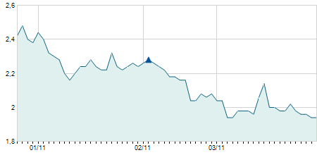 -0,30 / -2,36%