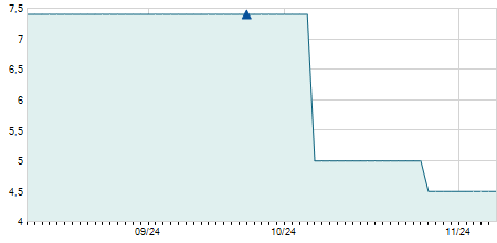 | 12/05/2015 | -0,40 / -3,45% | 11,60 | 11,60 | 11,20 | 11,20 | 11,30 | 4,40 | 1.296.100 |   |