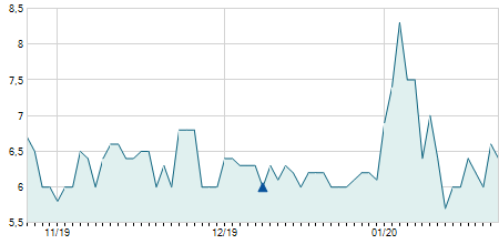 | 06/03/2017 | 0,00 / 0,00% | 2,40 | 2,40 | 2,20 | 2,30 | 2,30 | 2,30 | 1.669.027 |   |