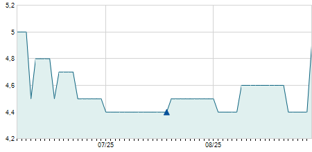 | 06/06/2025 | 0,00 / 0,00% | 1,80 | 1,90 | 1,70 | 1,80 | 1,79 | 1,80 | 1.293.600 |   |