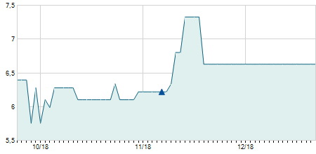| 12/04/2017 | -0,10 / -4,35% | 2,20 | 2,30 | 2,10 | 2,20 | 2,20 | 2,20 | 615.775 |   |