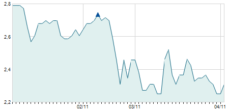 | 02/02/2024 | +0,30 / +11,11% | 2,50 | 3,00 | 2,30 | 3,00 | 2,50 | 3,00 | 17.600 |   |
