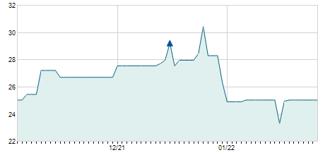 | 22/06/2018 | 0,00 / 0,00% | 2,50 | 2,60 | 2,50 | 2,50 | 2,50 | 2,50 | 34.600 |   |