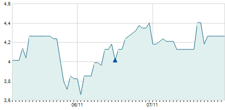 | 07/01/2022 | +1,40 / +5,30% | 27,80 | 27,80 | 27,80 | 27,80 | 27,80 | 23,77 | 100 |   |