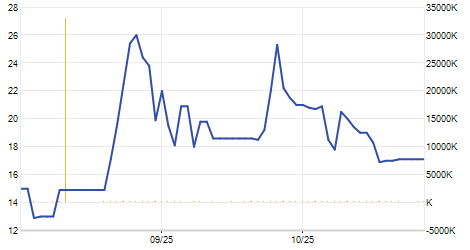 | 09/04/2025 | +2,20 / +14,47% | 17,40 | 17,40 | 17,40 | 17,40 | 17,40 | 16,48 | 100 |   |