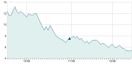 | 11/05/2012 | -0,50 / -4,24% | 11,80 | 11,80 | 11,30 | 11,30 | 11,30 | 2,74 | 2.610 |   |