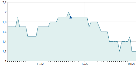 | 03/08/2018 | -0,10 / -14,29% | 0,60 | 0,60 | 0,60 | 0,60 | 0,60 | 0,60 | 6.800 |   |