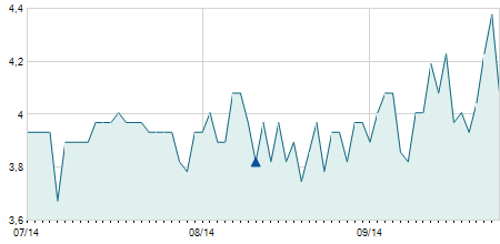 | 03/04/2013 | +0,30 / +8,11% | 4,00 | 4,00 | 4,00 | 4,00 | 4,00 | 3,78 | 100 |   |